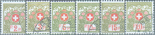1911-1926, Schweizer Wappen und Alpenrosen, blaugrünes Papier