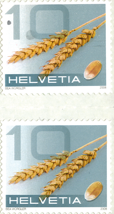 2008, Getreide, 10 Rp Weizen, "Zwei grosse schwarze Flecken" bei der 1 und 0 der Wertziffer