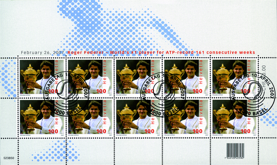 2007, Roger Federer, 100 Rp. Roger Federer, Ausgabetag-Sonderstempel 10.04.2007