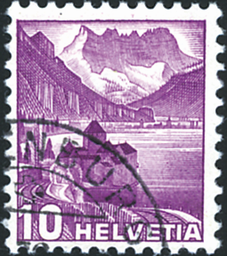 1936-1938, Neue Landschaftsbilder (Stichtiefdruck), 10 Rp. Schloss Chillon, nachgestochene Platte, glattes Papier