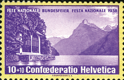 1938, Tellskapelle am Vierwaldstättersee, 10+10 Rp. violett-gelb, "hellviolett statt dunkelviolett", glatte Gummierung