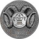 2022, Argali, Mongolei, Feinsilber, 999/1000, 2 Unzen/62,2 Gramm schwer, 38,61 mm Durchmesser, Black-Proof-Ausführung, Limitierte Auflage, weltweit nur 999 Ex.